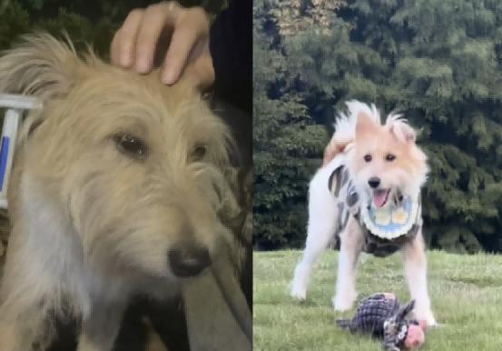 从此,小狗有了家,有了家人,眼神从开始的胆怯懦弱,变得阳光自信。
