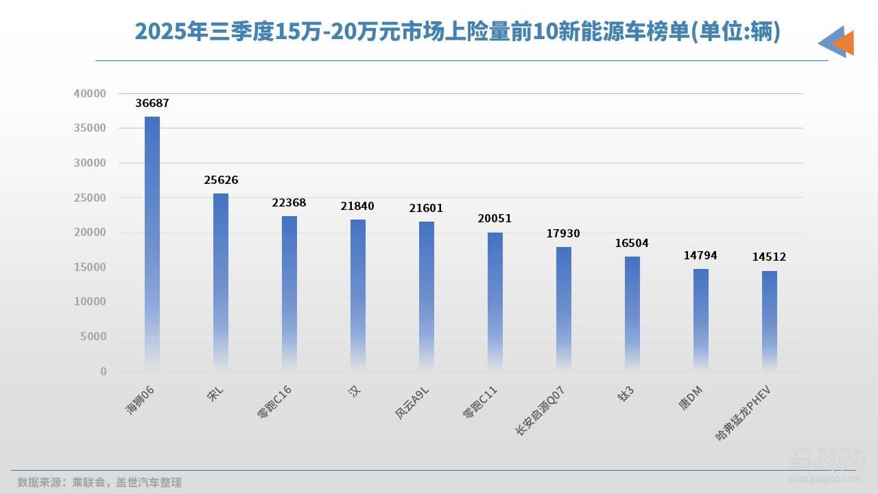 反观新能源阵营,比亚迪海狮06(季度售车36,687辆)与宋L(季度售车25,626辆)等车型正试图复制10-15万区间新能源车的成功经验。零跑C16以及零跑C11则凭借"性价比+大空间+增程/纯电双路线"的组合策略,满足了用户以紧凑型车的预算获得中型车空间体验的需求。
